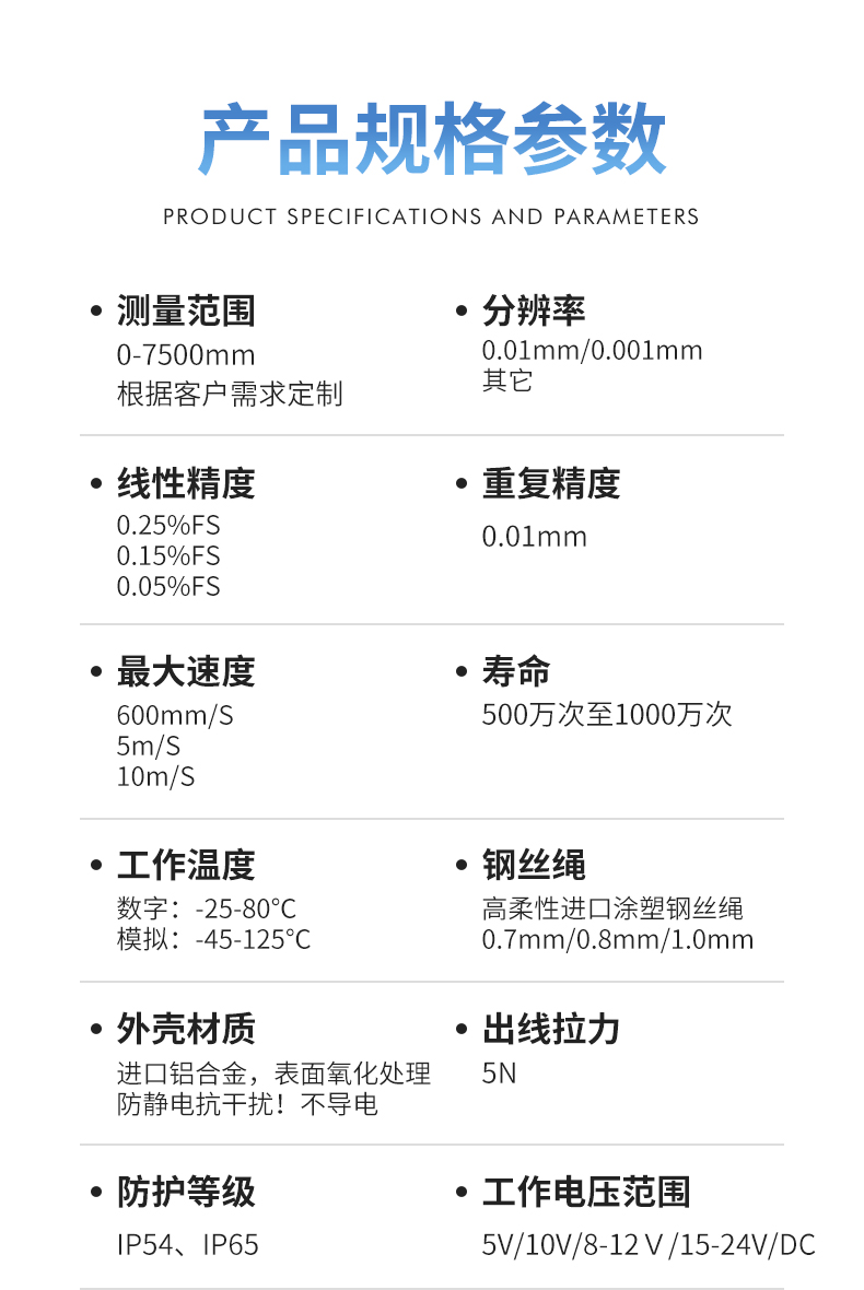 拉繩位移傳感器閘門(mén)開(kāi)度儀高精度拉繩編碼器模擬量數(shù)字量信號(hào)輸出電子尺